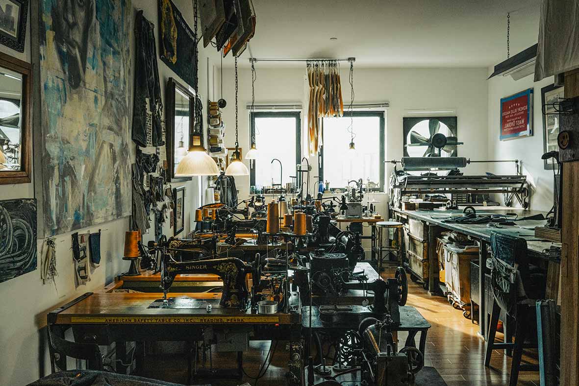 Time appears different as we enter the golden light of a third floor loft behind a non-descript gate in Bedford Stuvyesant in Brooklyn, New York. Bowery Blue Makers is a studio of around five hundred square feet, filled with old and new denim fabric, and antique sewing machines. Here, Takayuki Echigoya, known as Echan, makes jeans by historical methods, each part of the process by hand.