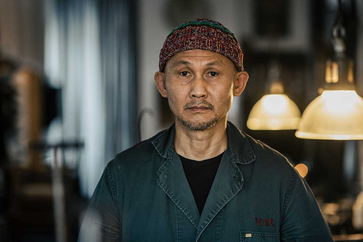 Echan grew up in Wakkanai, a coastal city of 35 000 in northern Japan. His father was a fisherman and his -mother a home maker. There was no sewing tradition in the family, but Echan’s career began in vintage clothing shops in Tokyo and Sapporo. In 1996 he moved to New York for the first time, to start a fashion brand on Manhattan’s Lower East Side. He returned to Japan after some time, and brought his brand with him. He focused more and more on denim, learned to sew it, and started collecting old sewing machines. “I got tired of chasing fashion. I gave up because keeping up with trends and throwing away ideas became painful.”