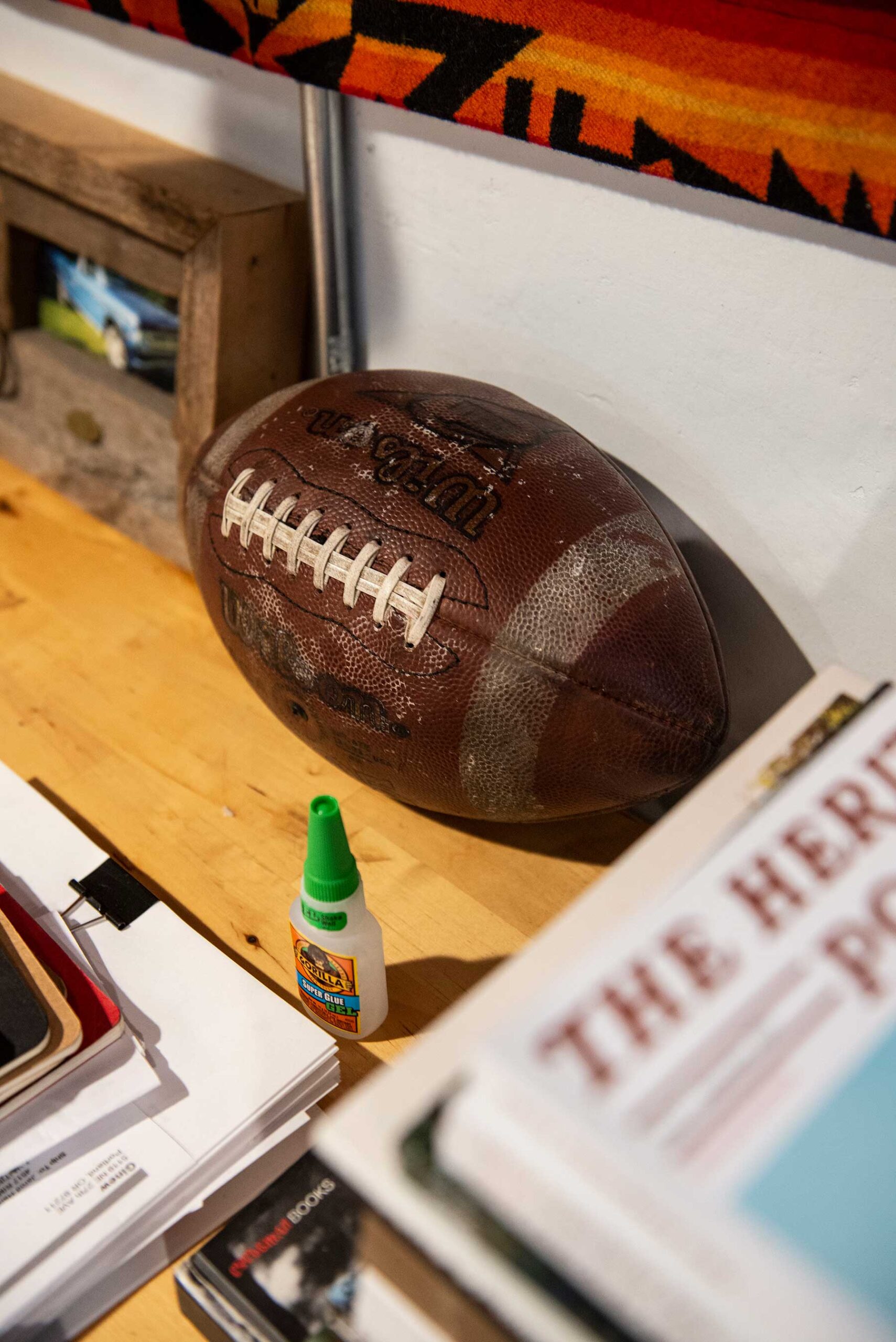 One half of Ginew, Erik Brodt, meets me at the back of his house in a sleepy, suburban neighborhood in northern Portland, a world away from corporate offices and creative factory lofts. I didn’t have any idea what to expect from their office space when I made this appointment with the co-founder of the only fashion brand run by two members of America’s Indigenous population. However, it all turns out to be much better than I could ever have imagined.