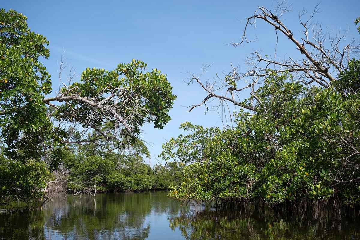 But back to me, standing in the mangroves, water to my knees. Anders is grinning, while I’m totally focused on catching any movement in the water. We had hoped to see the guardians of the mangrove forests – the mild-mannered, beautiful, and absolutely enormous manatees. But right now, I don’t want to see them or anything that moves in the water. The reason we’ve hopped out is that it’s so warm we wanted to cool our feet. At least that’s what Anders said.